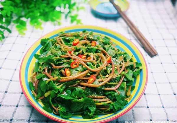 1.马齿苋洗净放入沸水中,加入少许盐和油,焯水30秒至颜色变绿,捞出,迅速放入冷水中,将上面的粘液清洗干净,然后把水沥干,放在一个大碗里。