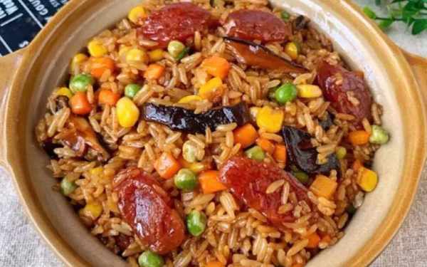 (1)香肠切片,香菇提前泡软切片,胡萝卜洗净去皮切丁,米饭提前蒸熟待用。