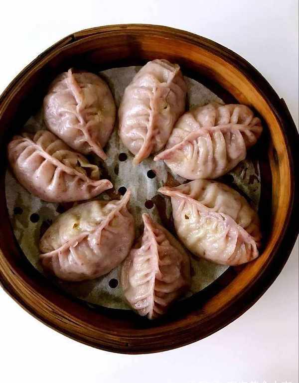 来给大家介绍一下,这一笼是猪肉白菜馅的饺子,外皮与点紫色,是因为加入了紫苏叶子榨的汁水搅拌和面的,吃起来更营养美味。