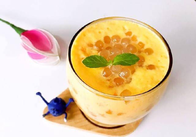 这杯是芒果西米露啦,吃完早餐后,再来喝一杯,那感觉是极好的,芒果汁含有大量的维生素A,因此具有防癌、抗癌的作用。芒果汁还能美化肌肤。由于芒果中含有大量的维生素,因此经常食用芒果,可以起到滋润肌肤的作用。