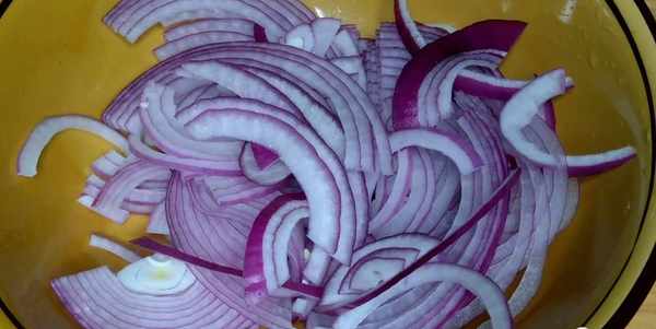 首先我们把木耳用凉水给它泡开,用凉水泡的木耳吃起来清脆爽口。再准备一个紫皮的洋葱,去掉它的头尾,一分为二,撕去它的外皮,这种紫色的洋葱吃起来比较脆爽。然后把切好的洋葱浸泡在水中,这样切的时候就不会辣眼睛。