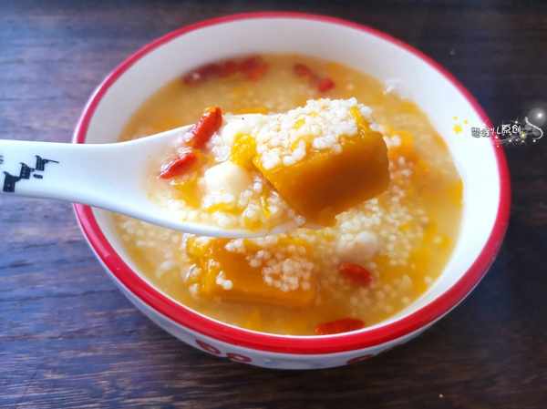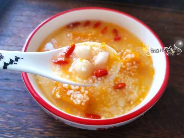 所用資料:小米1勺,百合少許,蓮子少許,南瓜半塊,枸杞少許。
