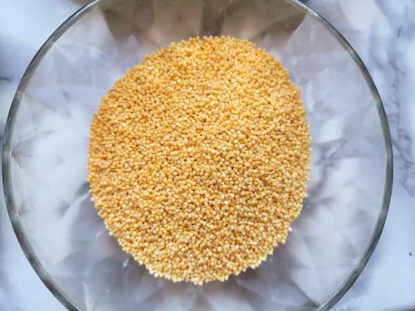 第三步:小米洗淨。小米含有豐富的鐵質、鈣質等微量元素,經常吃小米可以補充鐵元素,有利於補血,保護發質,還可滋潤皮膚。小米具有補脾胃、養心安神、美容養顏等作用。做成小米粥噴香好喝還營養。