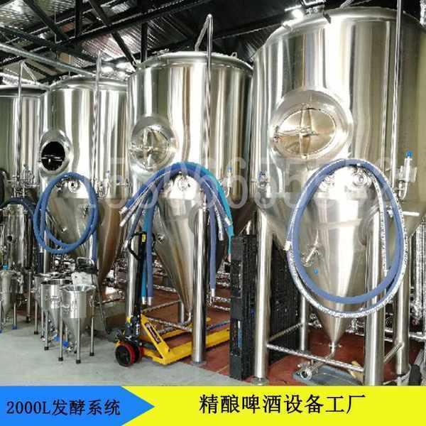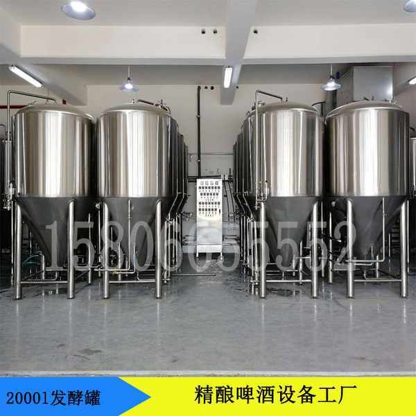 啤酒发酵系统有发酵罐、清酒罐、暂存罐组成;发酵是啤酒生产中极其重要的工艺过程。是一个有酵母参与的复杂的生化反应过程,发酵罐为锥底圆柱形,罐体具备自身冷却装置,可很容易地控制发酵温度;罐底为锥形,回收酵母及清洗都很方便;罐体具有CIP清洗系统,保证了生产中的卫生安全。具备了先进的国际发酵工程技术,可采用PLC自动控温技术。全过程控制啤酒发酵。