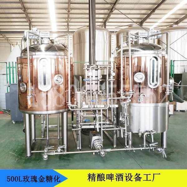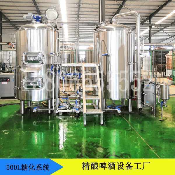 糖化系统是有糖化煮沸锅、过滤槽、漩涡沉淀槽及工艺管道组成;糖化煮沸锅为“蒸汽加热式;电加热式;燃气加热式”组成。罐体为双层保温方式“岩棉或聚氨酯”材料。加热面积足够达到麦汁煮沸蒸发量,能够有效阻止热能耗的外泄。罐体内部采用国际标准不锈钢精加工而成;外部采用不锈钢或紫铜镜面板组成,古朴典雅的外观造型;即酿出美妙佳酿还有艺术品的象征。糖化煮沸锅顶部加装搅拌系统能使醪液均匀糖化;过滤槽顶部加装耕刀系统保证醪液匀速过滤避免氧化。漩涡沉淀系统;采用切线及离心力的作用能够彻底的分离出多余的蛋白质及杂质,达到成熟麦汁的纯净。