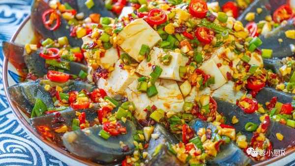 食材:豆腐1块儿、皮蛋4个、小米辣3个、小葱1把、大蒜半头