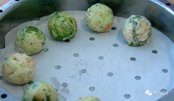 6、蔬菜丸子也蒸好了,关火开盖后取出,蘸上蒜泥鸡蛋酱汁,一口一个是刚刚好。