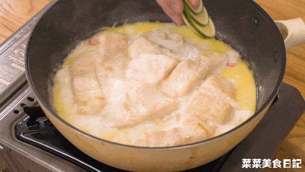 处理也很简单,鱼块提前煎香,然后下锅和椰汁、香料煮一锅就完事了。