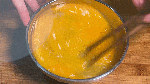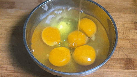 1、 在一个碗中打入5个鸡蛋,加食盐,淀粉水,用筷子搅拌均匀