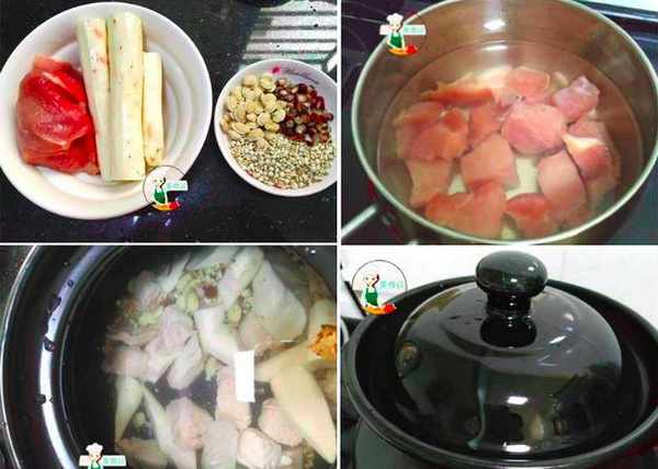 1、食材:瘦肉、山药、薏米、芡实、白扁豆2、生姜各适量。