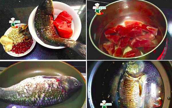 1、食材:鲫鱼、木棉花托干、瘦肉、陈皮、赤小豆、薏米各适量。