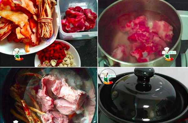 1、食材:猪横利、瘦肉、五指桃、芡实、莲子、淮山、陈皮、蜜枣。