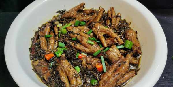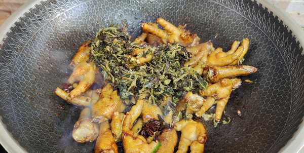 梅干菜中盐分比较大,通过清洗可以去除大部分盐,但是在加盐调味的时候还是要小心,同时此菜在烹饪的时候油量要稍微大一点,一则为了均匀煎炒鸡爪,二则梅干菜和油脂搭配香味更浓郁,梅菜的口感和味道俱佳!