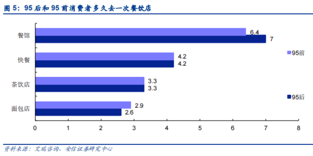 据艾瑞咨询数据,95前和95后消费者的茶饮类消费频次差不多是3.3天/次,对应参观7天-6.4天/次,前者消费频次,显然有能力承载着更多商业寄托。