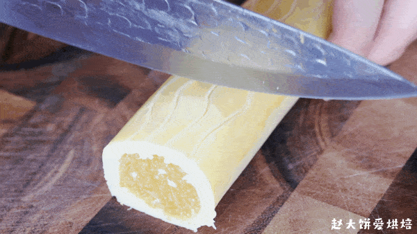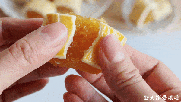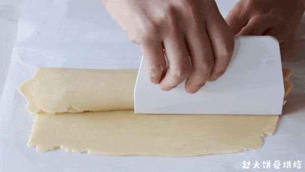 再借助刮板整形,放入冰箱冷冻半小时以上定型(另外一半的凤梨馅,同样操作)