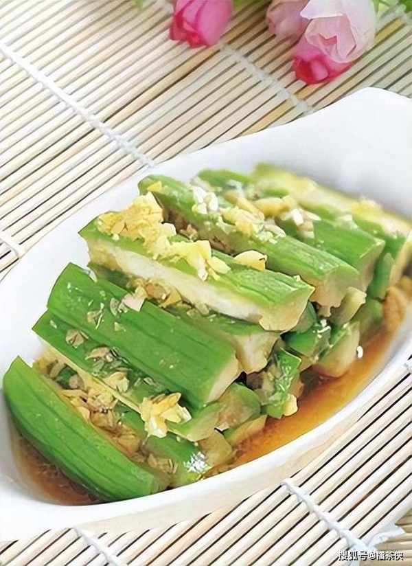 材料:丝瓜300克,蒜20克,盐、味精、生抽、食用油各适量