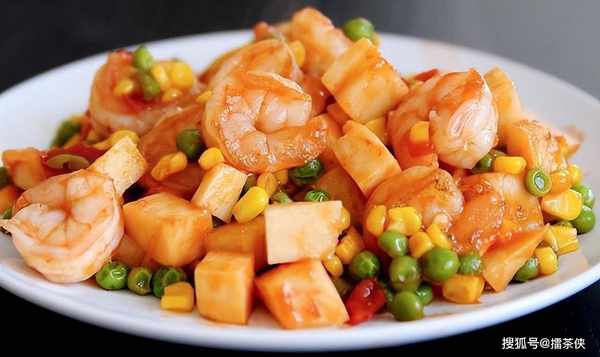 食材:虾、冬笋、杂蔬、葱、姜、料酒、蕃茄酱、泡椒、盐