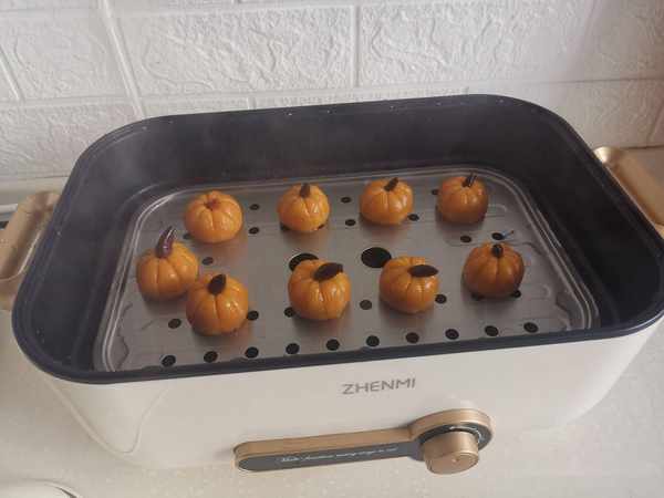 第五步:小南瓜就做好了,放到篦子上,大火蒸大約15分鐘。