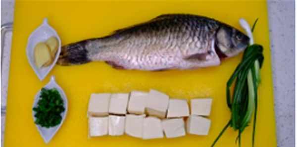 首先要准备好原材料,既然是鲫鱼豆腐汤,那就肯定要准备一条新鲜的鲫鱼和一块嫩豆腐。然后还准备一小把的香葱、姜片和盐。