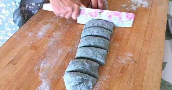 9、把面团搓成长条状以后,切成几个大小相等的面剂。