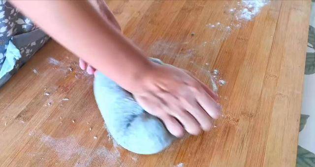 8、取出面团,揉一下,排出面团里面的气泡。