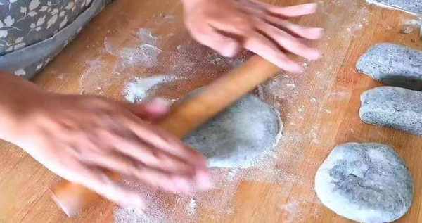 10、取一个面剂揉一下,团成馒头状以后,擀成面饼状。