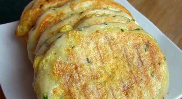 3.家里没有电饼的朋友可以用平底锅代替,无论是平底锅还是电饼都要提前预热,这样做的早餐饼更松软柔软,凉了也不硬。