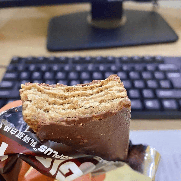 这款蛋白棒和常见的不同,别的蛋白棒吃着齁甜,要不就噎得慌,但是这款它是以威化的形式出现的,外面包裹着一层薄薄的巧克力,口感酥脆,带着一丝丝的甜,之后就是它的营养非常高,一根蛋白棒含有9.7克蛋白质,饱腹感能达到4小时