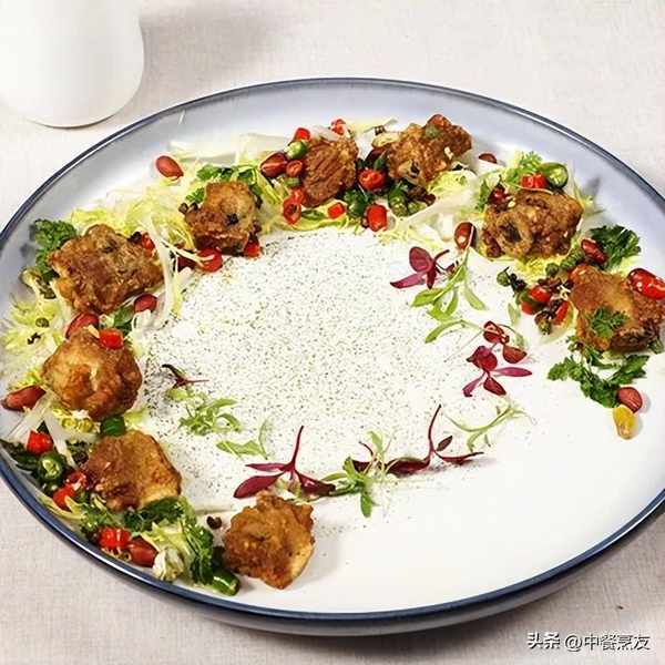 薄盐鲜鸡精6克 、 安多夫腌粉4克、 青花椒麻辣酱40克、 冲水排骨1000克、 食粉4克