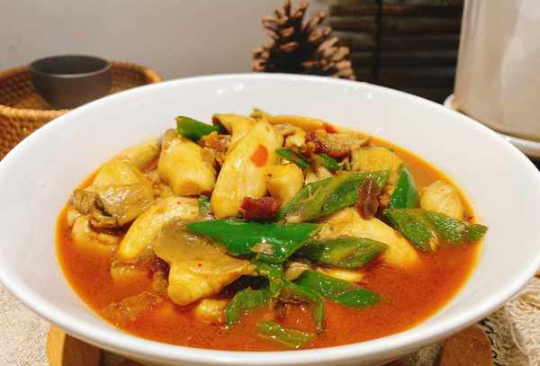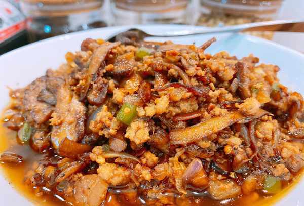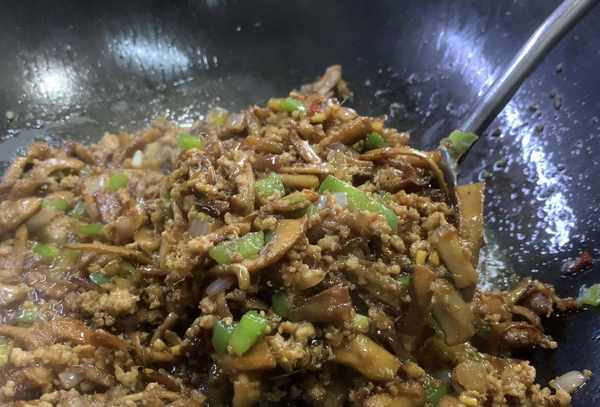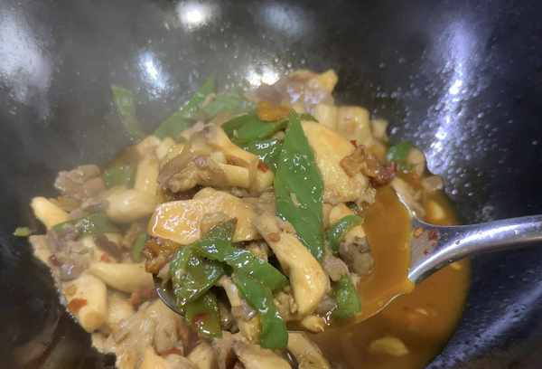 配料:香菇腿、肉碎、青椒、洋葱、酱油、酱油、盐、鸡精、食用油。