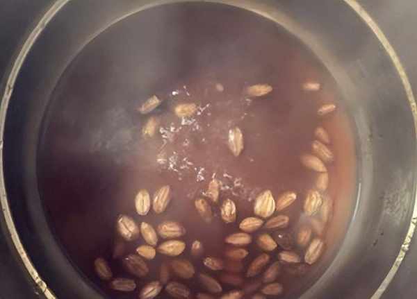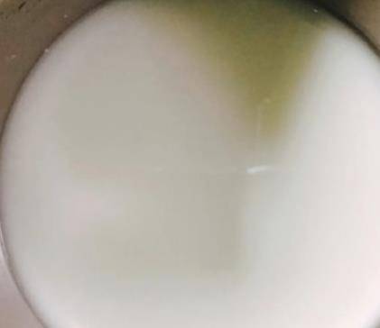 15.稠度跟大泡泡差不多。厨房里光线昏暗,颜色更深。关火前,加入两小茶匙醋煮。煮醋的香气和直接加醋是不一样的。