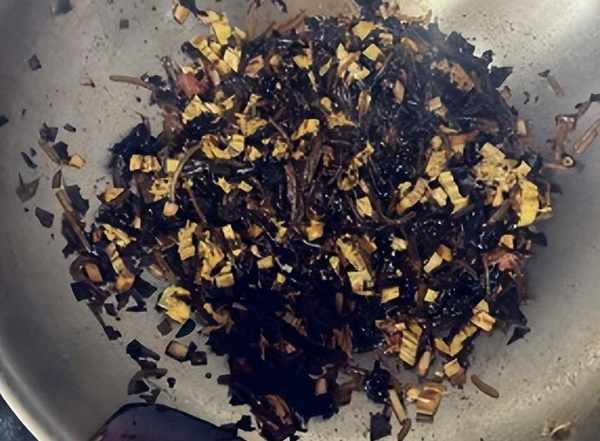 11.将所有材料,紫菜,香菇,腐竹,面条,百合炒香。