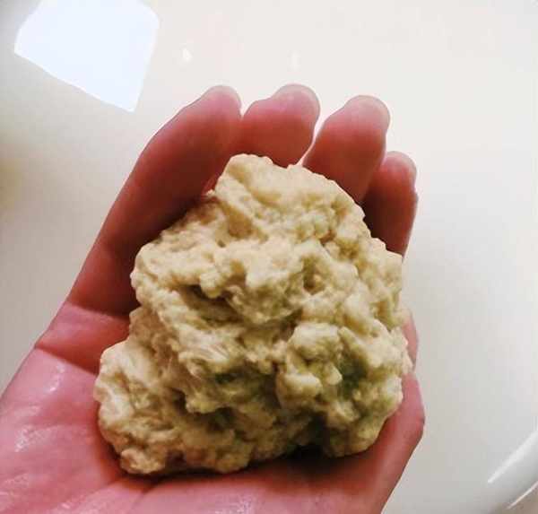 3.开始用手反复洗,直到收缩成一个小球,颜色变深,变得有弹性。洗面筋的水留着备用,最后勾芡收汁。