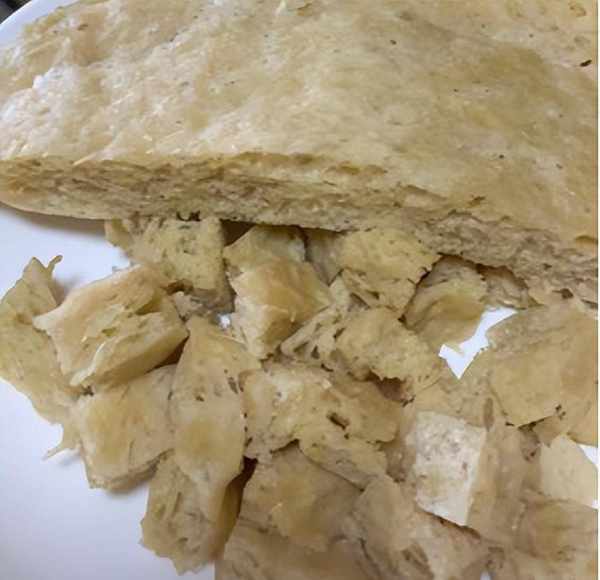 4、洗好的面筋加入2克酵母发酵一夜(北方房子温度低,如果天气暖和或热,发酵2-3小时,面筋上会出现大气泡)。倒入盘中蒸20分钟。