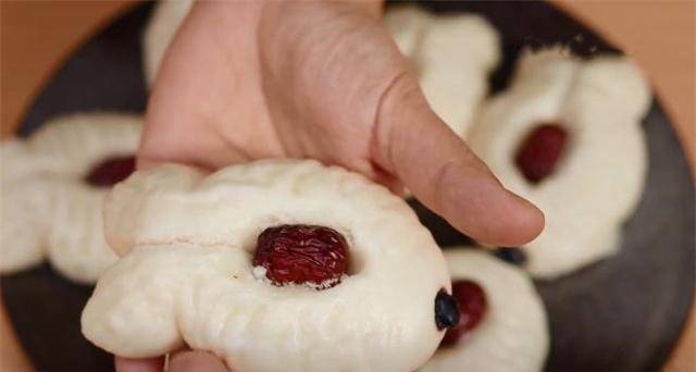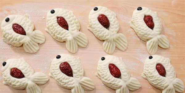 自己在家蒸枣花鱼包,造型比较简单容易,比普通的花包更有质感。早花馍,又称“年馍”,是过年用的馒头。花末寓意吉祥、丰收。枣花鱼卷也很容易做。它主要由红枣和面粉制成小鱼形状。有不同的类型,非常漂亮。蒸好的红枣鱼包之后,红枣的甜味弥漫在包子里,咬下去软软的,甜甜的!