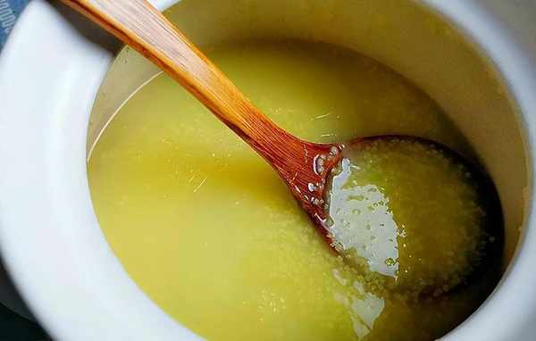 小米粥里的米油其实就是小米提炼的油。煮粥时,水不断飞溅,油不能聚在一起,所以看不见米油。关火后,盖上锅盖,让小米粥静置片刻,油会聚集成浓稠的米油,这就是小米粥的精华所在。