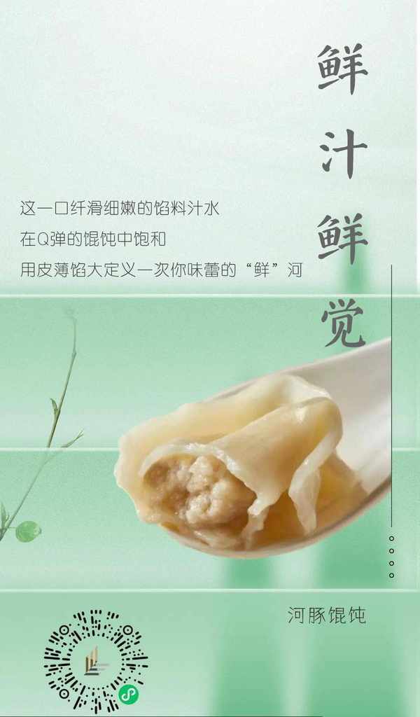 馄饨馅选用养殖无毒河豚。厨师总是考虑馅料的比例。馅儿绵密紧实,汁水丰富,外皮光滑恰到好处。咬一口,超级清新的味道会一层层渗入味蕾。