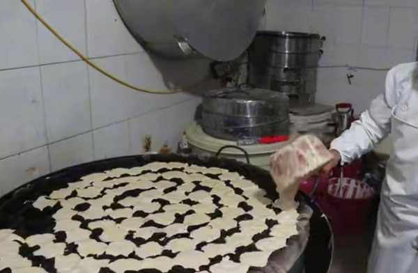 当红糖水和粘米水按照一定的比例混合好了之后,老板便将一张漆黑的笼布铺在模具上,又将笼布压进模具里,然后再将混合好的红糖和粘米,用勺子舀在笼布里面,这种做法使碗耳糕蒸熟以后取出来更方便,因为不用直接从模具里将碗耳糕一个一个挖出来,而且碗耳糕也更完整漂亮。只是这张笼布确实是不堪入目,20多年一直没有换过,由起初洁白的颜色变成现在漆黑的一片。