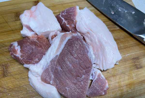 1.预先准备好猪肉片,搓皮做馅。包子不能用瘦肉,要用肥肉。