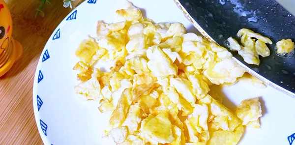 再打一个鸡蛋,拌匀,锅中油烧热,将鸡蛋放入热油中,将鸡蛋煎熟,煎好装盘待用。