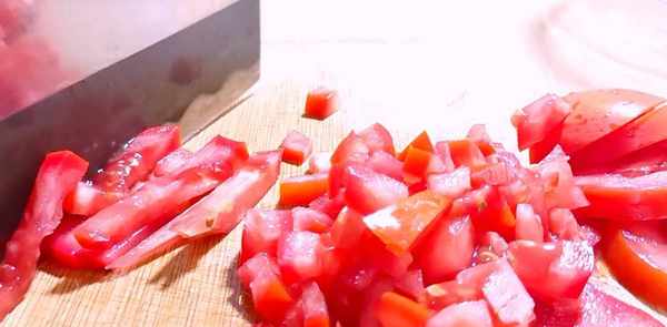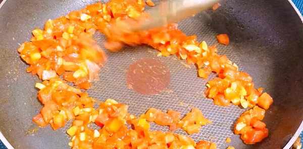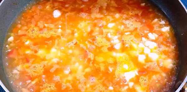 回锅烧热油,将葱蒜切碎爆香,加入切碎的西红柿炒至汁液软烂,盖上足量开水。