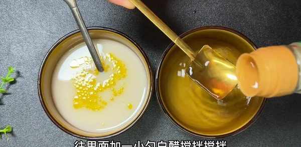 然后处理第二个碗,加入一茶匙白醋并混合。由于膨胀迅速,蒸出的馒头、馒头色白、透气、松软。