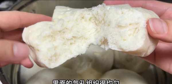 看,一个个馒头肥美,白嫩,表面光滑,热气腾腾,差点吃不完。馒头的底面也干净、蓬松、柔软。这时候的馒头很烫,里面的气孔非常均匀柔软,像棉花糖一样蓬松。