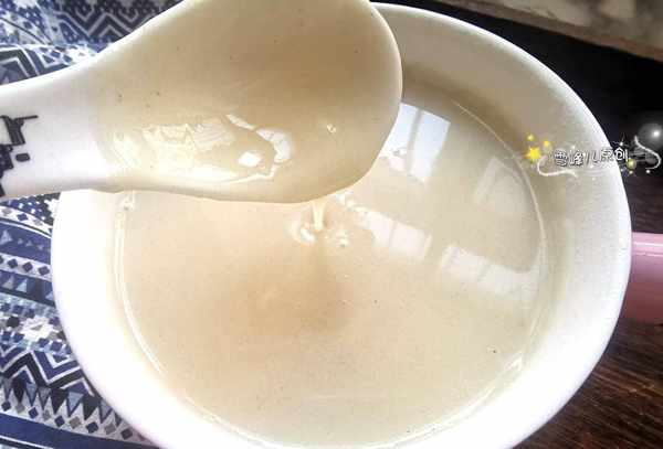 2、倒入白蘑菇糊,加少许冰糖融化,直接上桌。老年人饮用时,不加糖。
