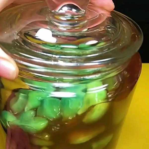 9、把罐子放在暖气管上,或者阳光照射时间长的地方大概7——8天就会变绿,腌好后开盖后香气四溢。