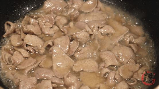 8、起锅多倒入一些食用油,油热下入猪肝,并快速地滑炒,大概炒至猪肝微微卷起,颜色变深时,关火把猪肝先捞出来。