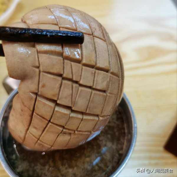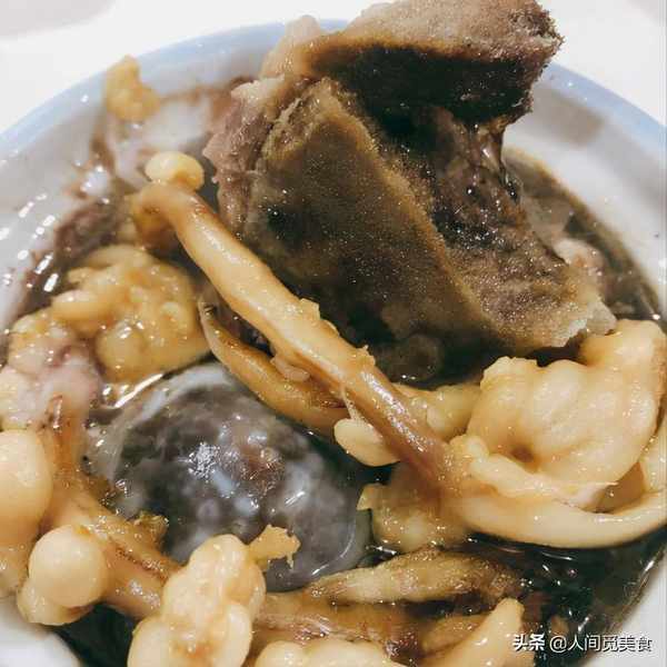他们这里的招牌菜是猪腰炖罐和墨鱼筒骨两道汤菜。首先是猪腰炖罐,将整块猪腰从中间剖开,把里面的筋膜挑出来,去掉腥骚味,然后将整块的猪腰瓣入汤炖煮。这么大块的猪腰吃起来很是过瘾,也没有异味,汤的气质整体比较清淡。中国人讲究以形补形,吃啥补啥,所以点的人也比较多。