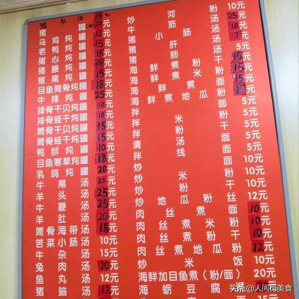 来小店吃饭最舒心的就是自在,没那么多讲究,来这里吃饭也很简单,一个汤一个饭一碗面或者粉就搞定一顿了。菜单挂在墙上,第一眼看去就是各种“炖罐”“汤”这种字眼占了一大半的篇幅。另外还有一些米粉和面,作为对主食的补充。