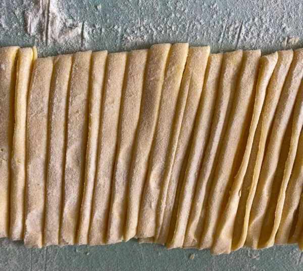 面条切完以后要赶紧弄散开,利于外皮干一些,这样煮出来口感劲道。