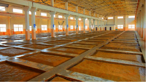 走进酱香型酿酒生产车间,李二召笑着说:“你在这里就能喝到茅台酒的品质。因为窖池就是从贵州茅台镇运回的大青石建成,原材料也是贵州产的小籽高粱。”酱香型窖池一次性可投放12吨的粮食,去年重阳节投料,需要一整年的发酵时间。酱香型酒需要九蒸九酿,工艺非常复杂,它遵循四高两长的酿造工艺,四高是指高温制曲,高温堆积,高温发酵,高温蒸馏,两长就是酿造工艺特别长,一年只能生产一次;储存时间特别长,需要至少三年时间。所以,酱香型白酒在贾湖还真是稀有品种。